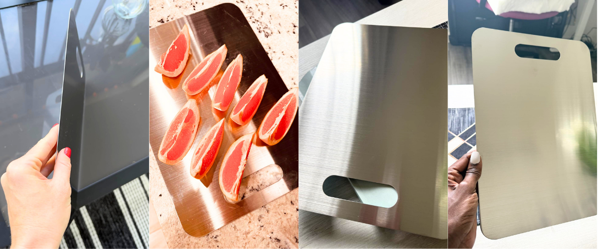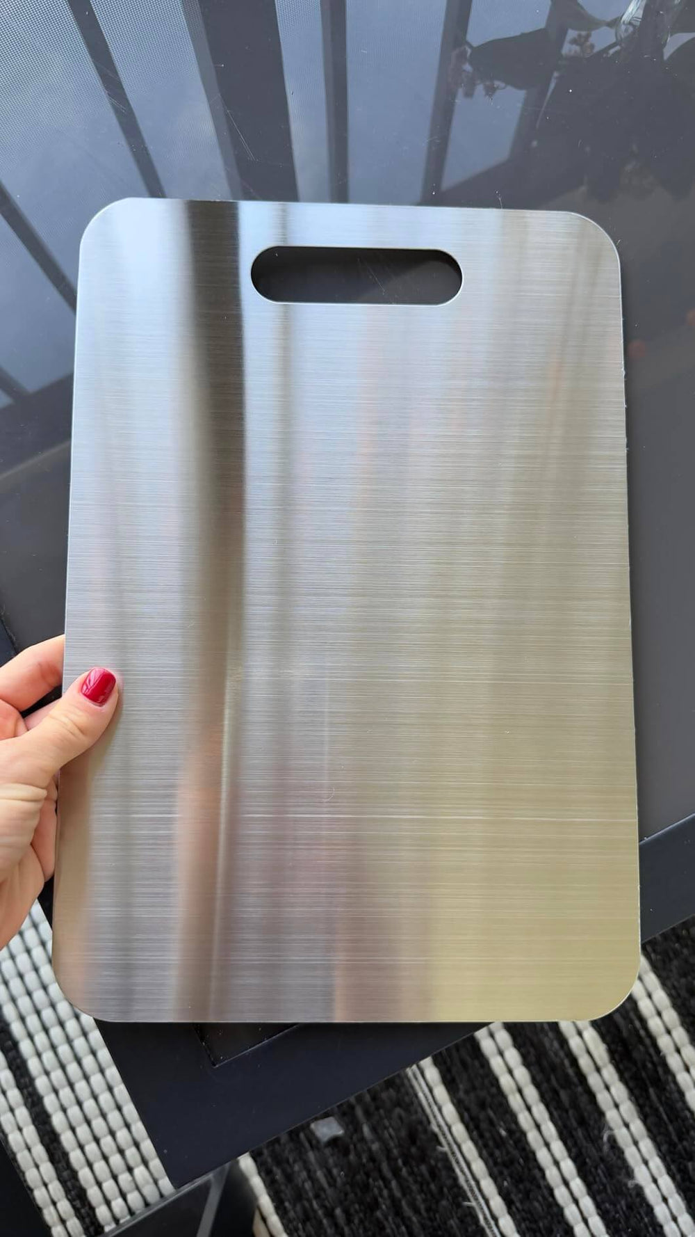 Titanique cutting boards are made from non-porous titanium, meaning they do not absorb moisture, bacteria, or food residue. Unlike plastic or wood, the surface does not degrade or develop hidden contamination over time. This results in a cleaner, safer cutting environment every time you prepare food.